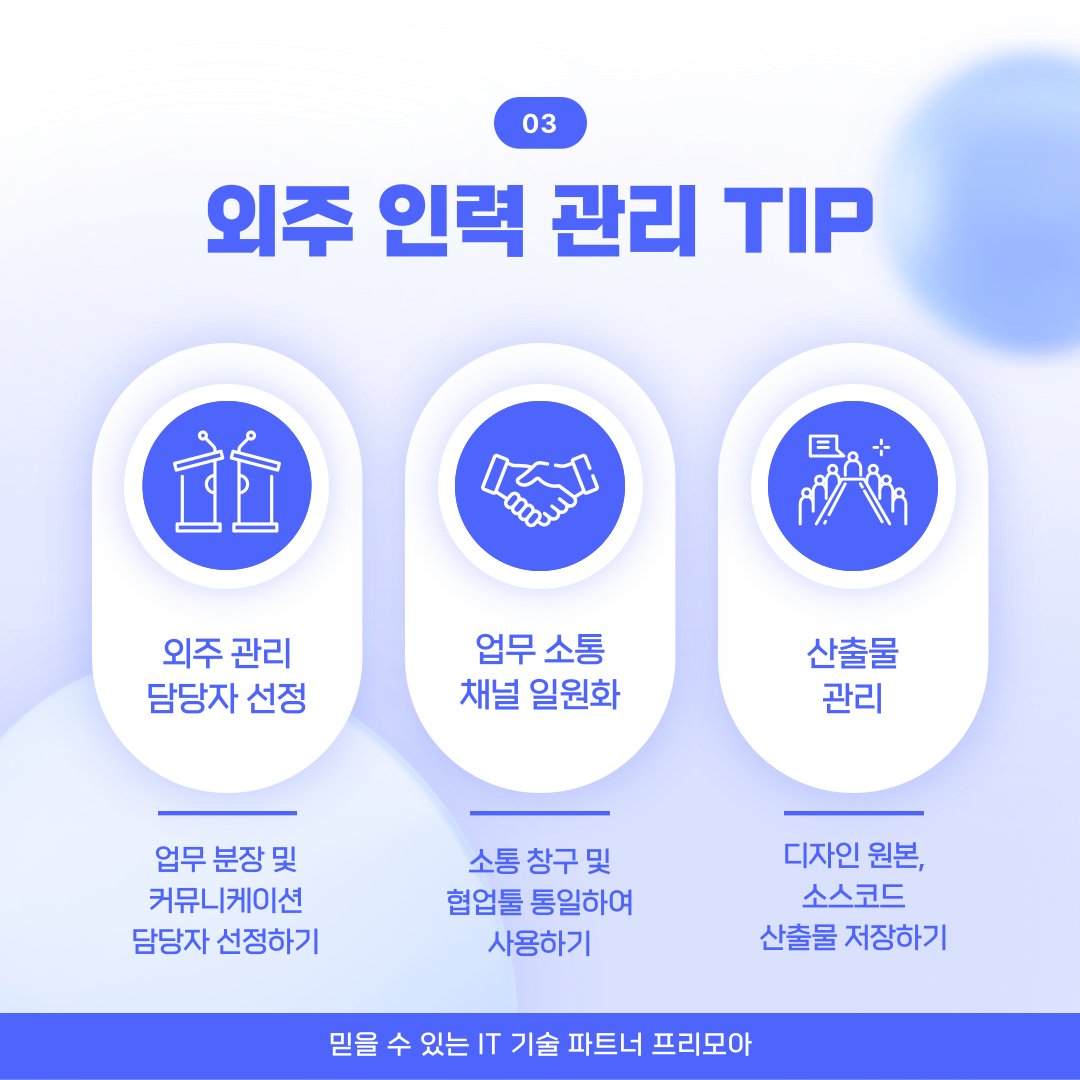 1. 내부에 외주 인력에게 업무 분장 및 소통을 할 담당자 정하기