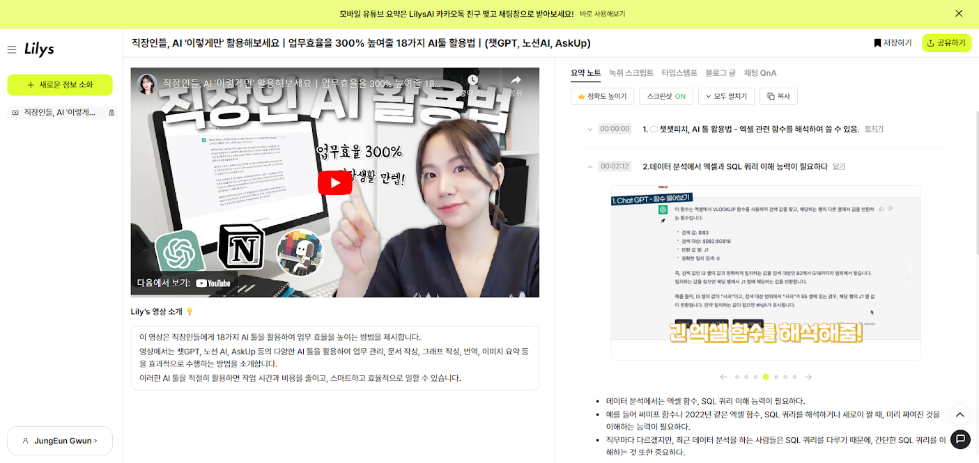 다음은 영상 내용을 요약해주는 AI 릴리스입니다. 최근에는 유튜브에서 영상 형태로 새로운 정보를 얻는 경우가 대부분인데요. 특히, 업무적인 정보를 얻기 위해서 정보성 영상을 보는 경우에는 10분 이상의 긴 콘텐츠가 많다보니 핵심 내용만 수 있으면 좋겠다는 생각을 해보신 적 있을 겁니다.
