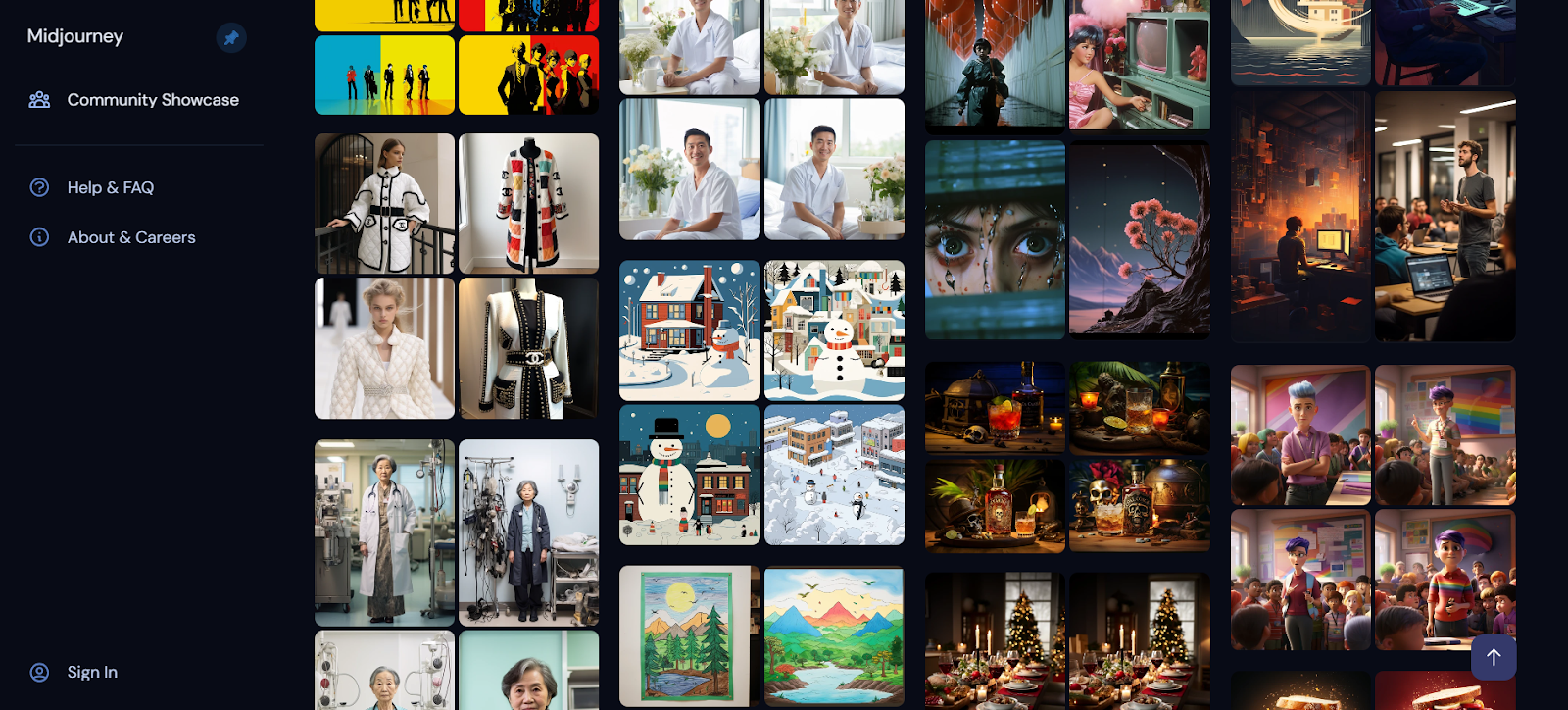 실제로 미드저니를 활용해 나온 이미지들을 보면 직접 그린 손그림 같은 이미지부터 실사와 닮은 사진형 이미지, 3D 캐릭터를 활용한 애니메이션형 그림 등 다양한 이미지를 생성할 수 있습니다.