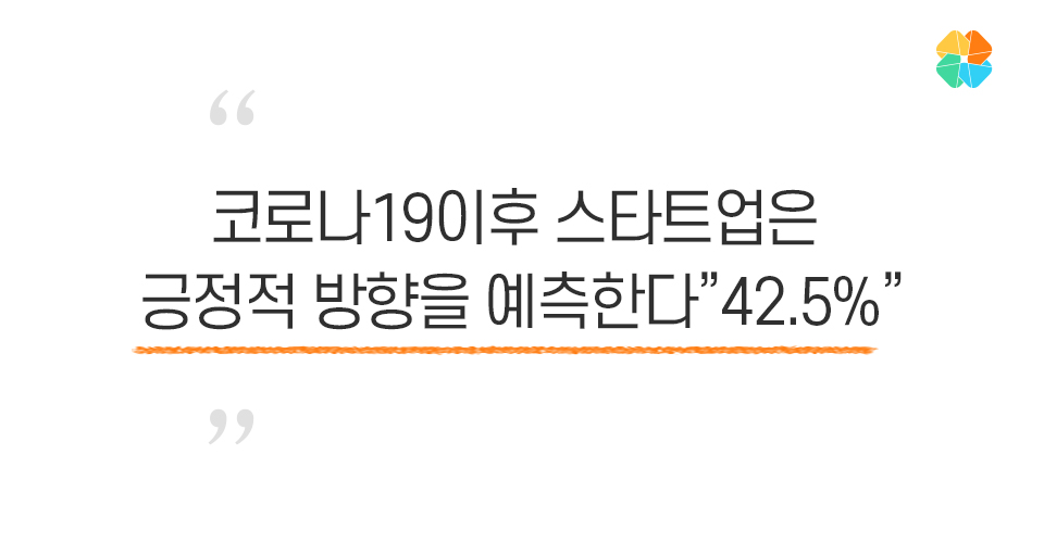 작년 5월 11일 중소벤처기업부가 발표한 '코로나 19 이후 스타트업 환경 변화 설문조사' 결과 긍정적 방향을 예측한 답변은 42.5%를 기록하며, 부정적 의견을 10%가량 앞질렀습니다.