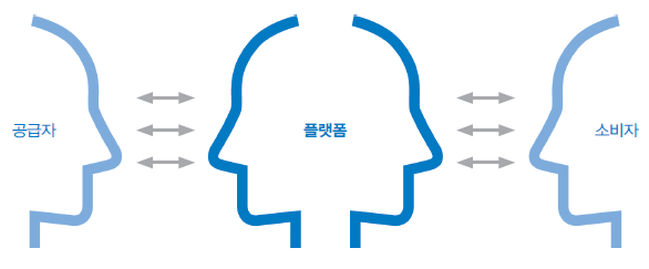 오늘날에는 구매자와 판매자가 다이렉트로 연결되기보다는 플랫폼이 중간에서 이 둘을 동시에 상대하는 형태를 갖고 있습니다. 판매자는 플랫폼을 통해 재화를 제공해 수익을 얻을 수 있고 구매자는 플랫폼을 통해 재화를 이용하고 비용을 지불합니다. 이때 '공급'의 '주체'는 기존에 판매자에서 플랫폼으로 바뀌죠.