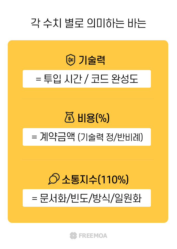 고객 만족도 공식 : 파트너 기술력 X 비용지수( % ) X 소통지수 ( 110% )