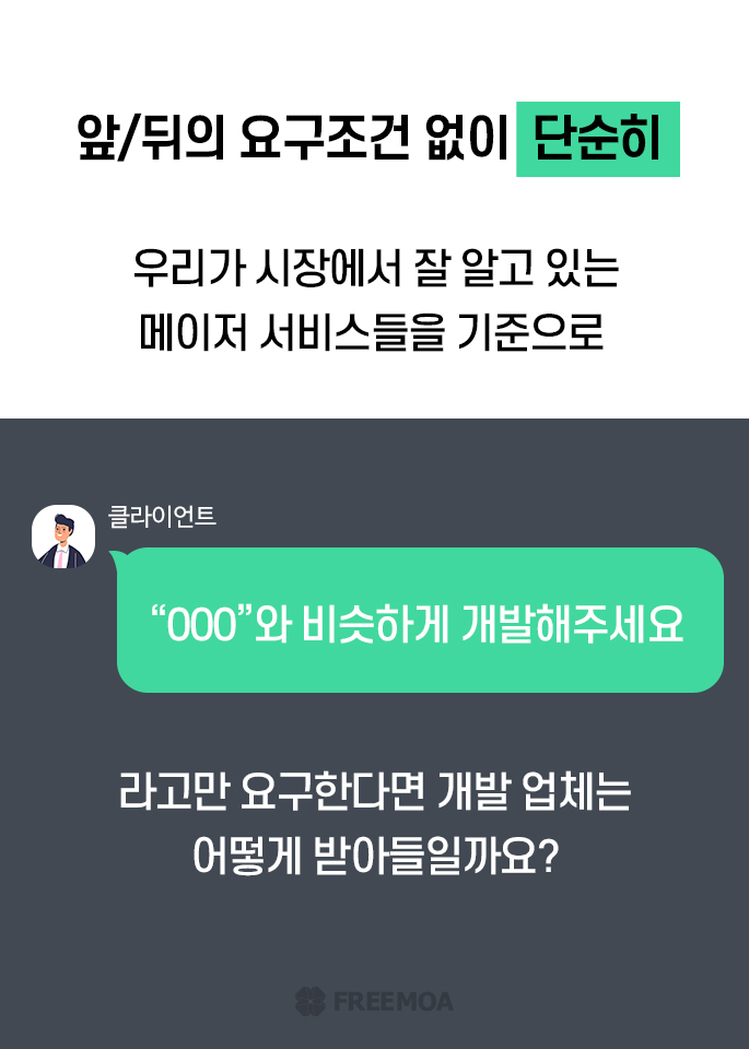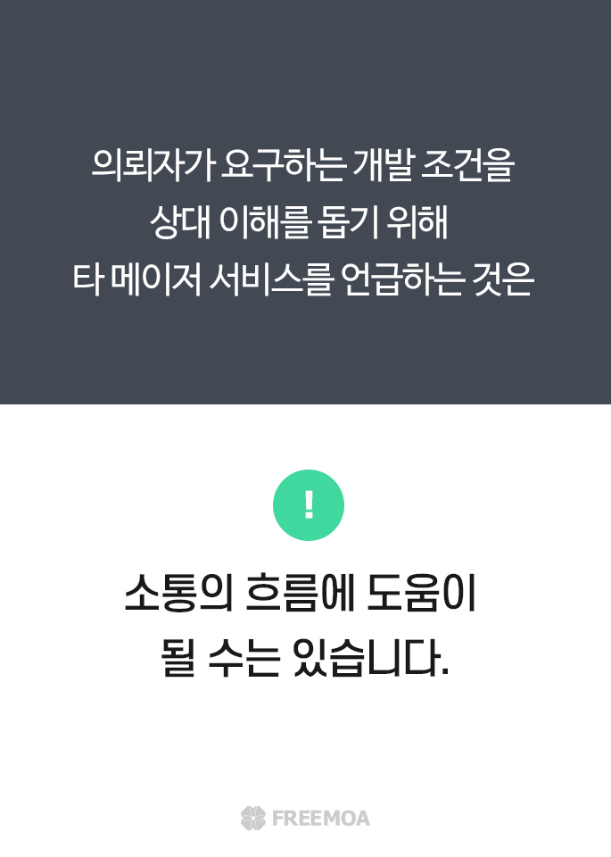 이러한 경우 대부분의 개발업체는 고객이 참고한 서비스를 기준으로